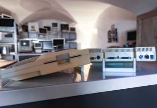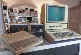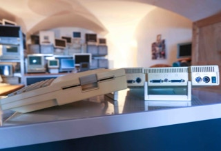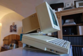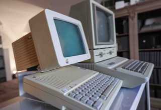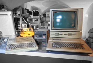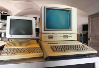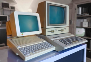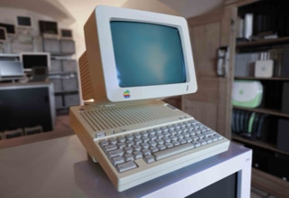 Apple released the apple IIc in april 1984, billing it as a portable apple II, because it could be easily carried, though unlike modern portables it lacked a built-in display and battery. The IIc even sported a carrying handle that folded down to prop the machine up into a typing position. The apple IIc featured a built-in 5.25-inch floppy drive and 128 KB RAM, with a built-in disk controller that could control external drives, composite video (NTSC or PAL), serial interfaces for modem and printer, and a port usable by either a joystick or mouse. Unlike previous apple II models, the IIc had no internal expansion slots at all, this being the means by which its compact size was attained. Third parties did eventually figure out how to wedge up to 1 MB of additional memory and a real-time clock into the machine, and a later revision of the motherboard provided an expansion slot that could accept an apple memory card bearing up to 1 MB of RAM. The disk port, originally intended for a second 5.25-inch floppy drive, eventually was able to interface to 3.5-inch disk drives and (via third parties) even hard disks.