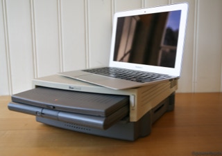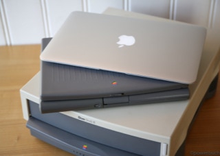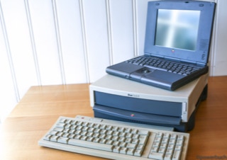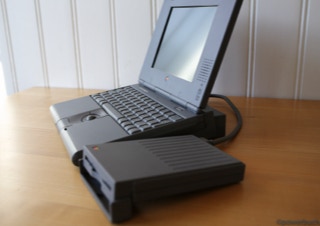 The duo-system was an intermediate thing between laptop and desktop. The overall system consisted of a stationary and a mobile unit. Worked the user at the desk he pushed the mobile device in a kind of cradle. The dimensions were impressive. Not the macbook air was apple's first notebook. With the powerbook duo launched early in the 90s apple had a notebook in the dimensions of a sheet of paper and less than two kilograms of weight.
