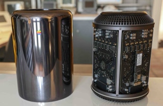 The new macpro removes the ability to replace hard drives by foregoing the four 3.5-inch drive bays for proprietary PCIe-channel flash storage. It also removes the ability to add PCIe cards internally, leaving the RAM as the only user-serviceable part. The I/O panel is illuminated when the unit senses it has been moved to make it easier for the user to see the ports.