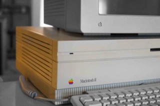 The mac II was the ultimate expandable mac. Based on the new 68020 processor, the mac II was the first 32-bit mac (although it was not "32-bit clean"). The mac II included 6 nubus slots, which allowed for a number of different apple and third party expansion cards. The mac II was the first mac with color capabilities. A graphics card could be installed capable of handling up to 16.7 million colors! tThe Mac II cames with one 800 KB floppy disk drive and one 40 MB internal SCSI hard disk drive.