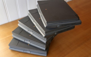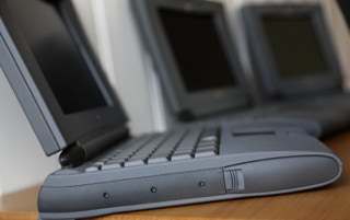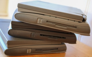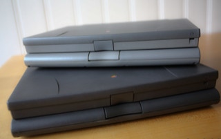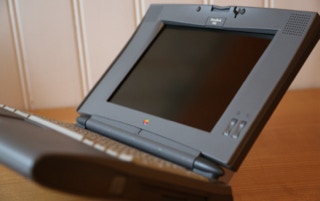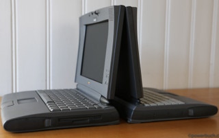 The 500 series consists of four models – the 520, the 520c, the 540, and the 540c. The 520 and 520c run on a 25 MHz 68LC040 CPU, and have a 9.5″ passive-matrix screens. The 520′s is grayscale and the 520c’s is capable of displaying 256 colors. The color screen uses dual scan technology which is better than the technology in the 520. The 540 bumps the CPU speed up to 33 MHz and provides an active-matrix grayscale display. It is slightly smaller at 9″. The 540c is the top end and adds a 16-bit active-matrix color display to the mix. All models shipped with 4 MB of RAM (still) and have hard drives ranging from 160 – 240 MB (520/520c) and 240 – 500 MB (540/540c) in size. The 520′s shipped with one battery and the 540′s shipped with two. Each battery lasts about 2.5 hours on a charge. All models include system 7.1.1 installed and can run up to Mac OS 8.1.